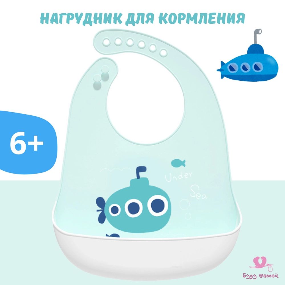 Нагрудник для кормления силиконовый с карманом, подводная лодка