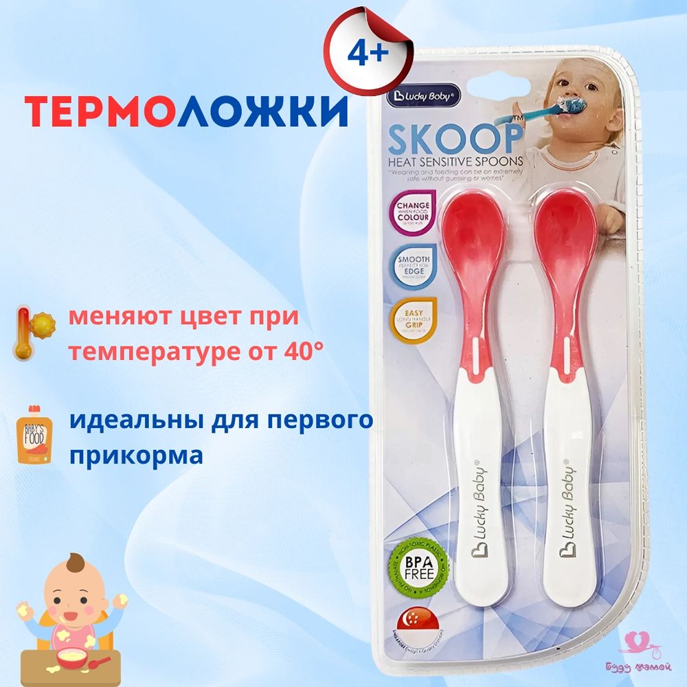 Термоложки для первого прикорма Lucky Baby меняющие цвет, с 4 месяцев, 2шт (розовые)