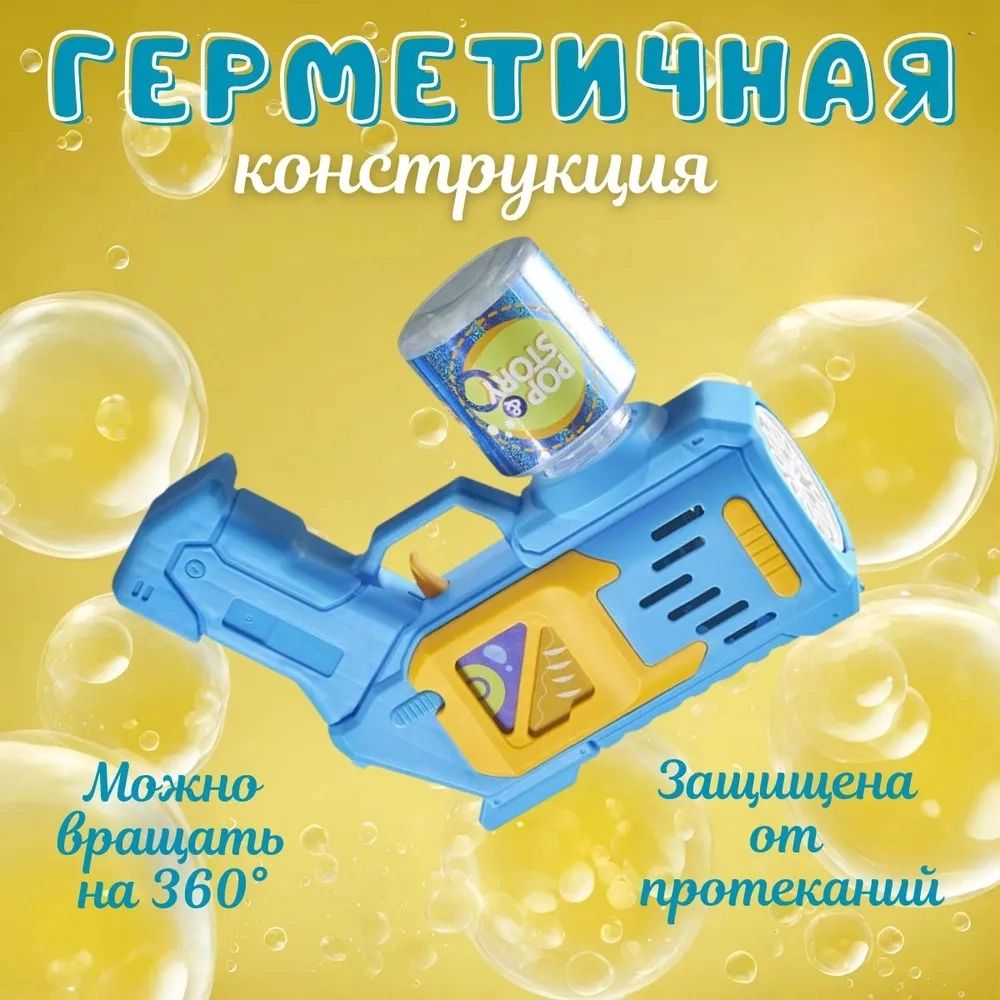 🔸Пистолет для мыльных пузырей на батарейках легкий и простой в использовании. Достаточно залить в специальный резервуар жидкость для создания пузырей и нажать на кнопку. В комплекте уже есть жидкость для создания аузырей. Пузыри будут появляться мгновенно, создавая яркое и незабываемое зрелище.