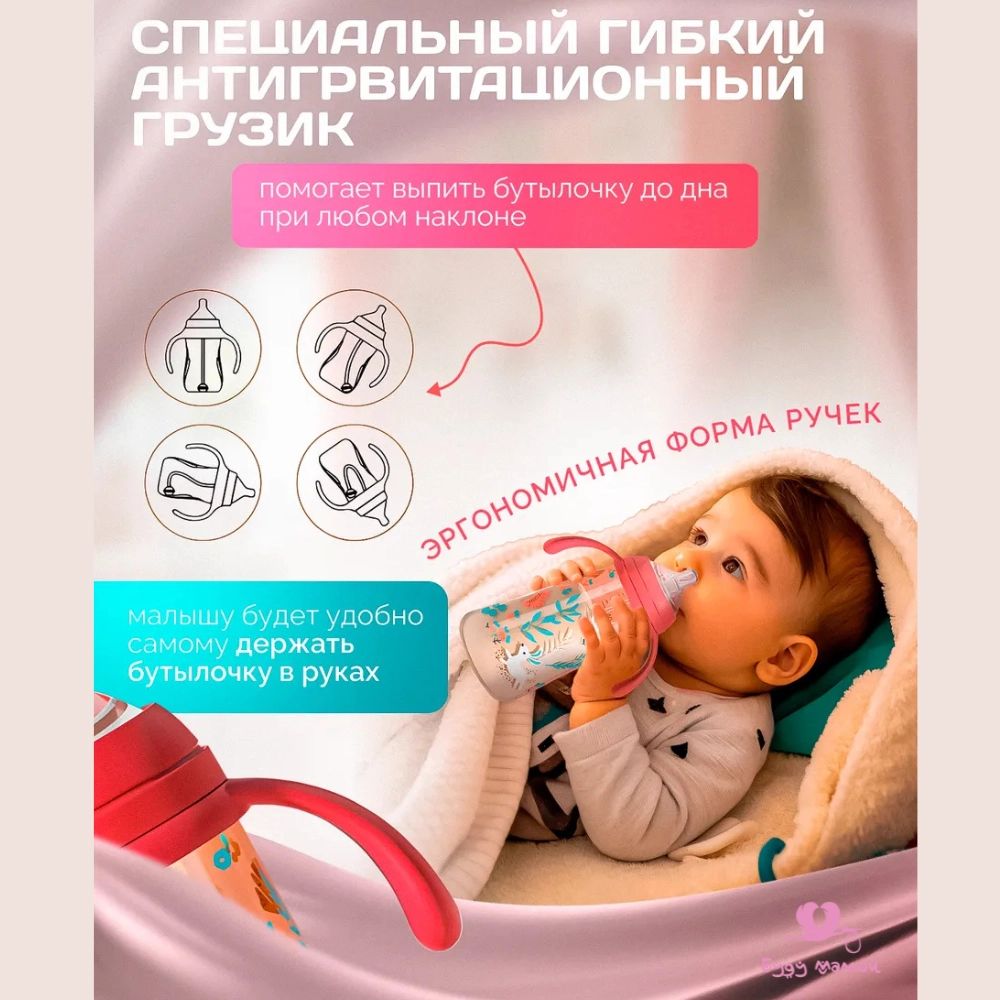 🙌 Забудьте о проблемах с кормлением – с нашей бутылочкой малыш сможет пить сидя или лежа, безопасно и с удовольствием! 😊🛋️