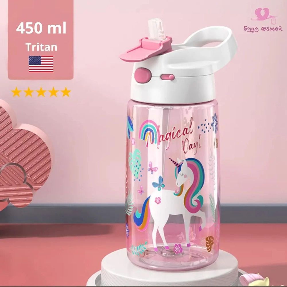 Детская бутылка для воды с носиком (поильник) на 450 мл, единорог (качество LUX) 🔥
