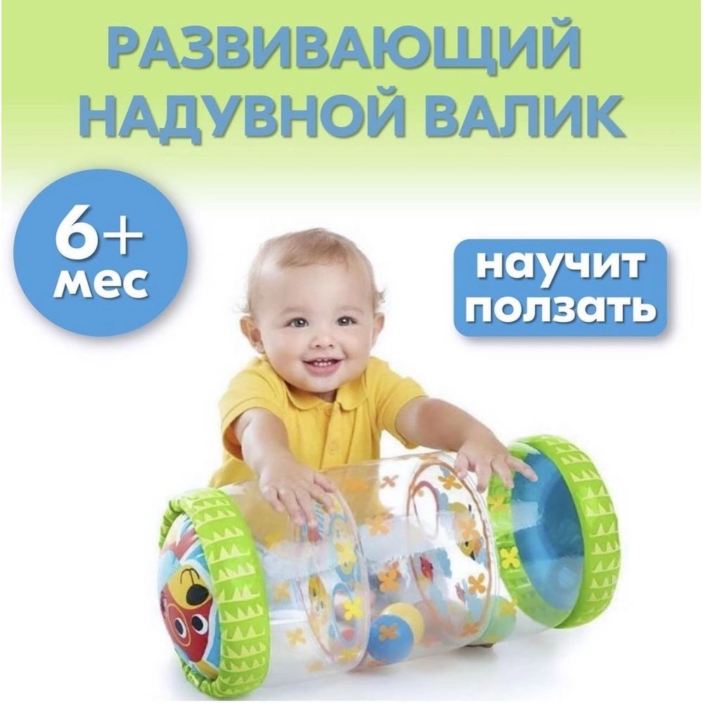 Развивающий надувной валик для малыша/ погремушка/ с шариками